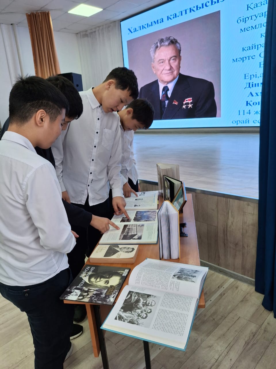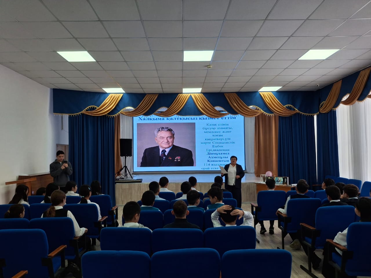 Көкшетау қаласының №7 жалпы орта білім беретін мектепте көрнекті мемлекет және қоғам қайраткері Дінмұхамед Ахметұлы Қонаевтың туғанына 114 жыл толуына өмірі мен қызметіне арналған «Халқыма қалтқысыз қызмет еттім» атты еске алу кеші өтті. Шара Станциондық қалалық үлгілі кітапхананың ұйымдастырумен өтіп, жас ұрпаққа елін сүйіп, халқына адал қызмет етудің жарқын үлгісін көрсетті.Іс-шараның мақсаты – өскелең ұрпаққа Қонаевтың ел тарихындағы айрықша орнын таныту, оның мемлекет басқарудағы көрегендігі мен адамгершілік қасиеттерін насихаттау. Кеш барысында кітапхана қызметкерлері мен қонақтар Дінмұхамед Ахметұлының ел дамуына қосқан зор үлесі, халқына адал қызмет еткен қайраткерлік тұлғасы жайында тағылымды әңгімелер өрбітті.Шара аясында Қонаевтың өмір жолына арналған фотосуреттер мен замандастарының естеліктері көпшілік назарына ұсынылды. Сонымен қатар, оның қарапайымдылығы, әділдігі мен елге деген сүйіспеншілігі туралы мазмұнды ойлар айтылып, қатысушыларға терең әсер қалдырды. Еске алу кешіне №7жалпы орта білім беретін мектептің 7 «А» сынып оқушылары мен кітапхана оқырмандары қатысып, тарихи тұлғаның өнегелі өмірі жайында мол мағлұмат алды. Оқушылар өз ой-пікірлерімен бөлісіп, Қонаевтай дара тұлғаның еңбегі бүгінгі ұрпақ үшін үлкен үлгі екенін атап өтті. Тағылымға толы бұл кеш жас ұрпақтың тарихи санасын қалыптастыруға, отансүйгіштік рухын арттыруға зор ықпал етті. Кеш аясында «Дінмұхамед Қонаев – дәуір тұлғасы» атты кітап көрмесі ұйымдастырылып, қайраткер туралы еңбектер мен естеліктер оқырман назарына ұсынылды. №7 мектеп оқушылары Қонаевтың өмірі мен қызметі туралы өлеңдер оқып, тарихи тұлға жайындағы ойларымен бөлісті. Бұл еске алу кеші жас ұрпаққа елін сүйіп, халқына адал қызмет етудің жарқын үлгісін көрсетті.