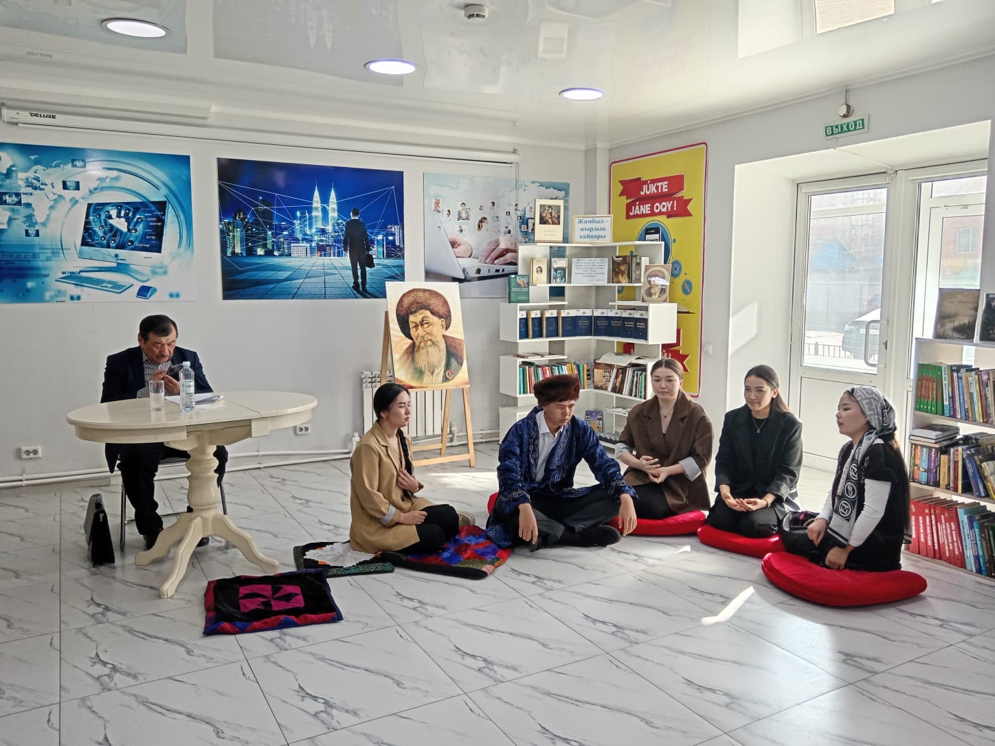 31 наурыз күні Бірлік қалалық үлгілі кітапханасында «Жамбыл-жырдың қайнары» атты поэзия кеші өтті. Бұл іс шараның негізгі мақсаты-жыр алыбы Жамбылдың ақындық талантын оқырмандар жүрегіне ұялату арқылы поэзияны сүю, оны бағалай білуге шақыру. Ақын шығармалары арқылы ұлтжандылық сезімін оятып, адамгершілікке, елінің өнерін сүюге баулу. Әдеби кешке, әдебиеттанушы ғалым, ұстаз, филология ғылымдарының кандидаты, доцент-Сәбит Нұрмұхамбетұлы Жәмбек-Жамбыл Жабаевтың тарихи тұлғасы, ел руханиятындағы маңызы жөнінде өзінің ойымен бөлісті. Сонымен қатар, Жамбыл поэзиясының бүгінгі ұрпақ үшін тәрбиелік маңызы зор екенін айтты. Іс-шараға, әдебиеттанушы ғалым, ұстаз, филология ғылымдарының кандидаты, доцент Сәбит Нұрмұхамбетұлы Жәмбек, Ш. Уәлиханов атындағы Көкшетау университетінің филология факультетінің 2-курс студенттері, Ж. Мусин атындағы жоғары қазақ педагогикалық колледжінің 3-курс студенттері және кітапхана оқырмандары қатысты. Кеш барысында, қатысушылар жыр алыбының өлеңдерін оқыды. Көпшіліктің назарына ақын туралы бейнебаян көрсетілді. Ш. Уәлиханов атындағы Көкшетау университетінің филология факультетінің студенттері Жамбыл Жабаевтың өмірінен алынған «Алғадай» қойылымын көпшіліктің назарына көрсетті. Кеш соныңда, шараға қатысқан студенттер алғыс хаттармен марапатталды.