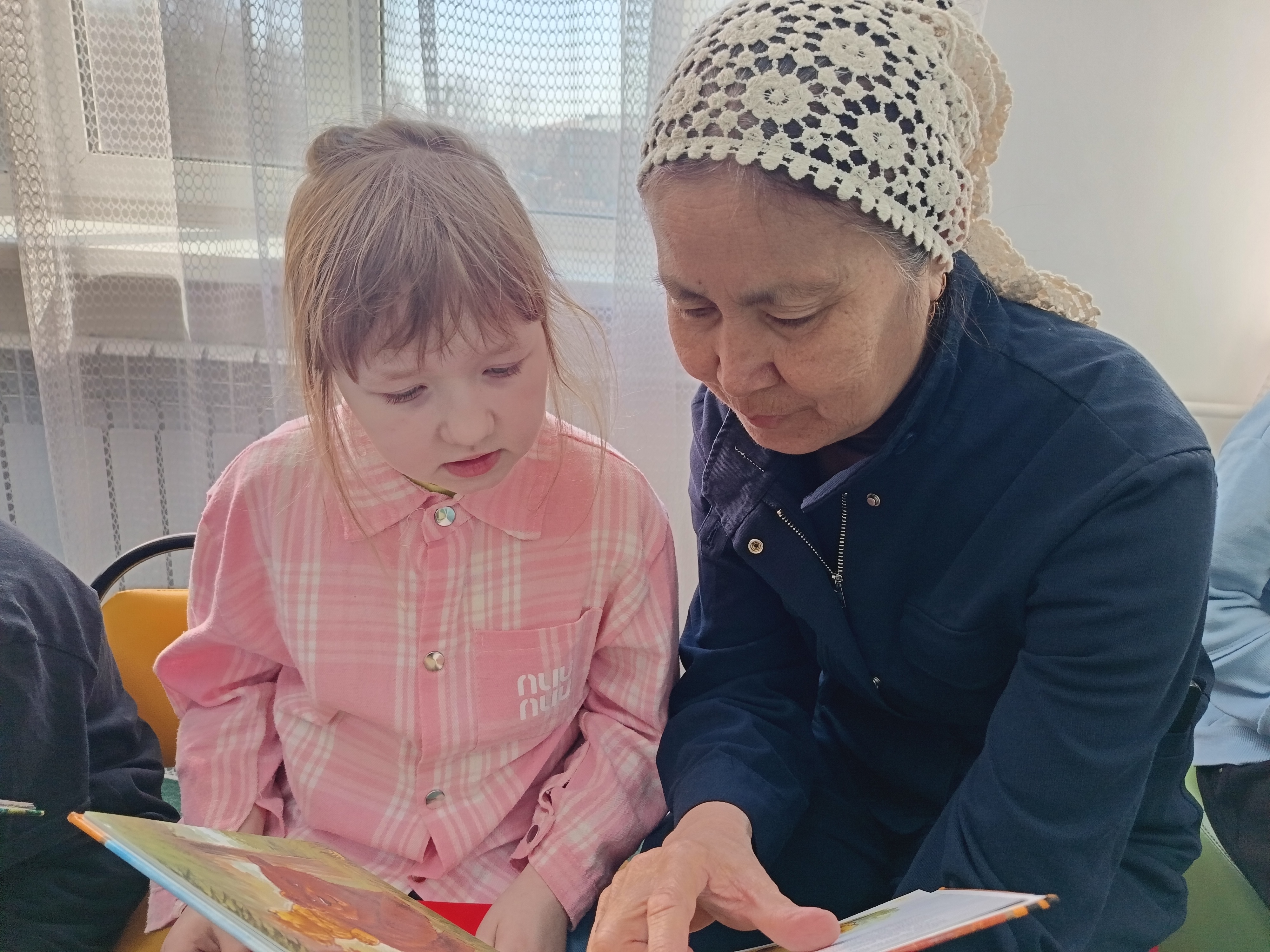 Оқу алаңы барысында әжелер немерелеріне қазақ халық ертегілерін оқып беріп, әрбір ертегінің тәрбиелік мәніне ерекше тоқталды. Балалар қызыға тыңдап, ертегі кейіпкерлерінің іс-әрекеттері арқылы жақсылық пен жамандықты ажыратуды үйренді. Сонымен қатар, ертегіден алған әсерлерін ортаға салып, өз ойларымен бөлісті.